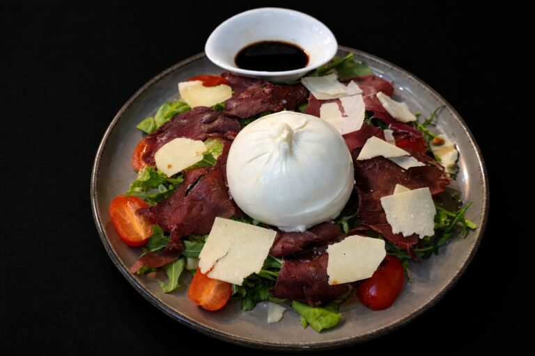 Tous nos ingrédients sont de première qualité : herbes de montagne, huile d’olive extra vierge, tomates San Marzano, fromage Fior di Latte de Campanie et bœuf Angus noir de ferme.